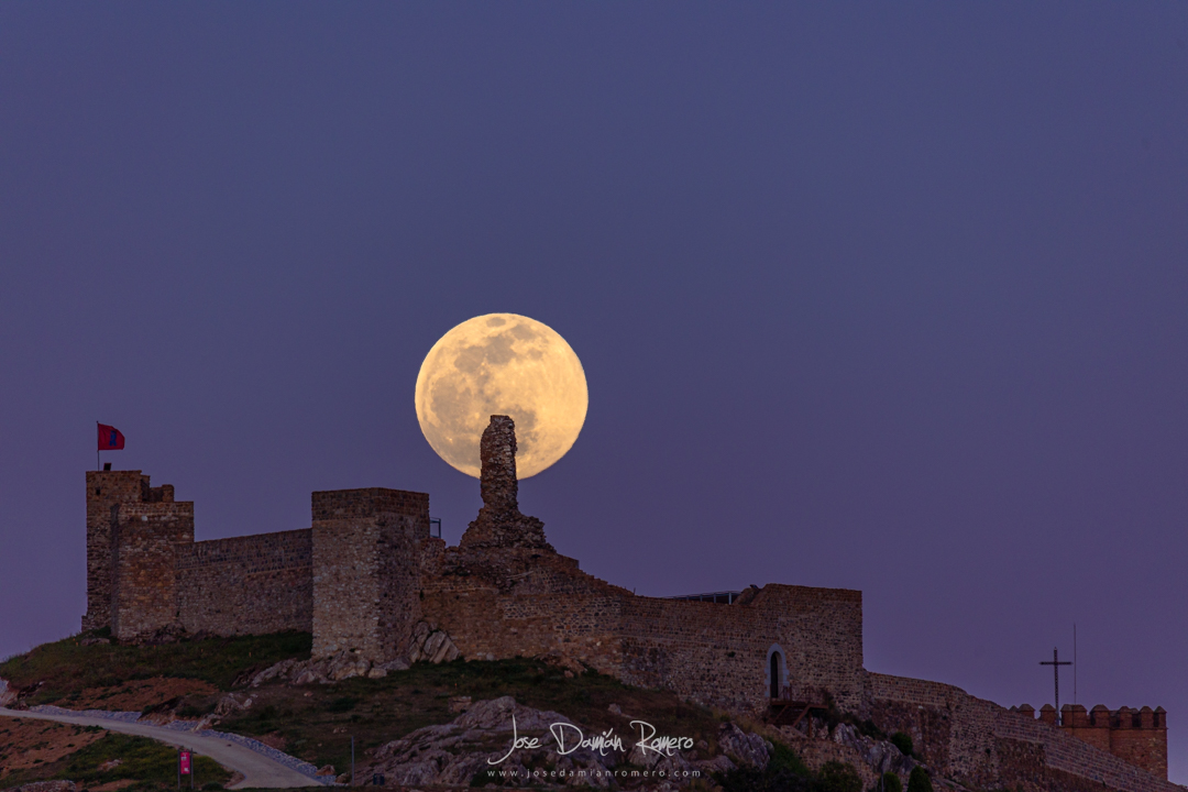 Fotografiando la luna detrás del castillo de Aracena
